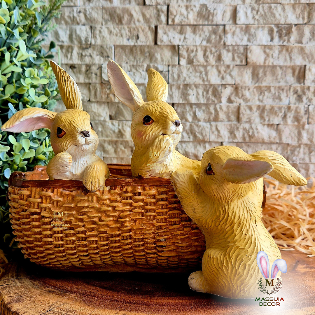 Lindo cachepot com aspecto bem realista com seus coelhos.