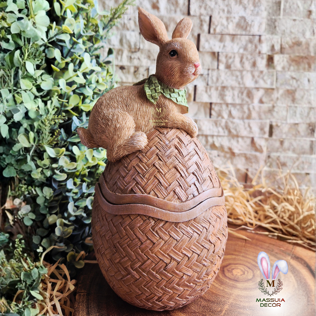 Lindo coelhinho no seu ovo de Páscoa que é também um charmoso porta-doces.