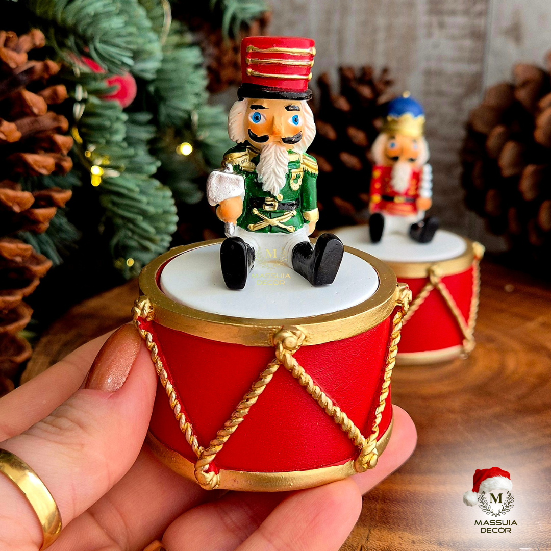 Encante sua casa neste Natal com esta linda dupla de soldadinhos de chumbo em cima de um tambor. Com detalhes minuciosos e acabamento impecável, essas peças trazem um toque de elegância e nostalgia para a sua decoração.