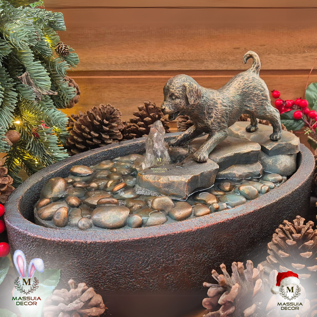 Uma Fonte ligada diretamente na energia que fica jorrando água para o nosso amigo Tobi se deliciar.