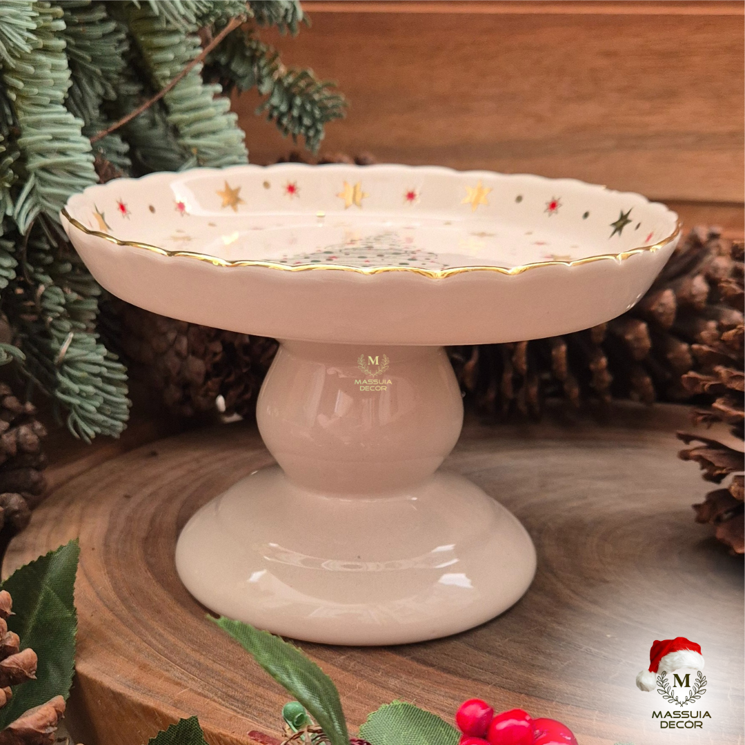 Muitos detalhes nos encantam na linha de cerâmica Celebrar! Feito a mão e com altíssima qualidadel, utilizando folhas de ouro em seu acabamento, deixando esse lindo porta-bolos ainda mais refinado!