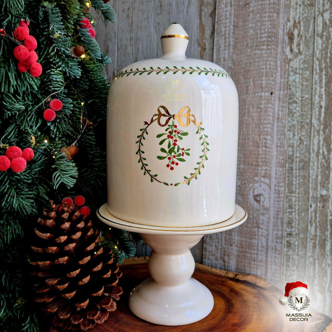 Adicione um toque de sofisticação à sua decoração natalina com este lindo Porta Panetones na cor off white. O design sofisticado com detalhes em folhas de ouro irá adicionar um toque de luxo à sua decoração.