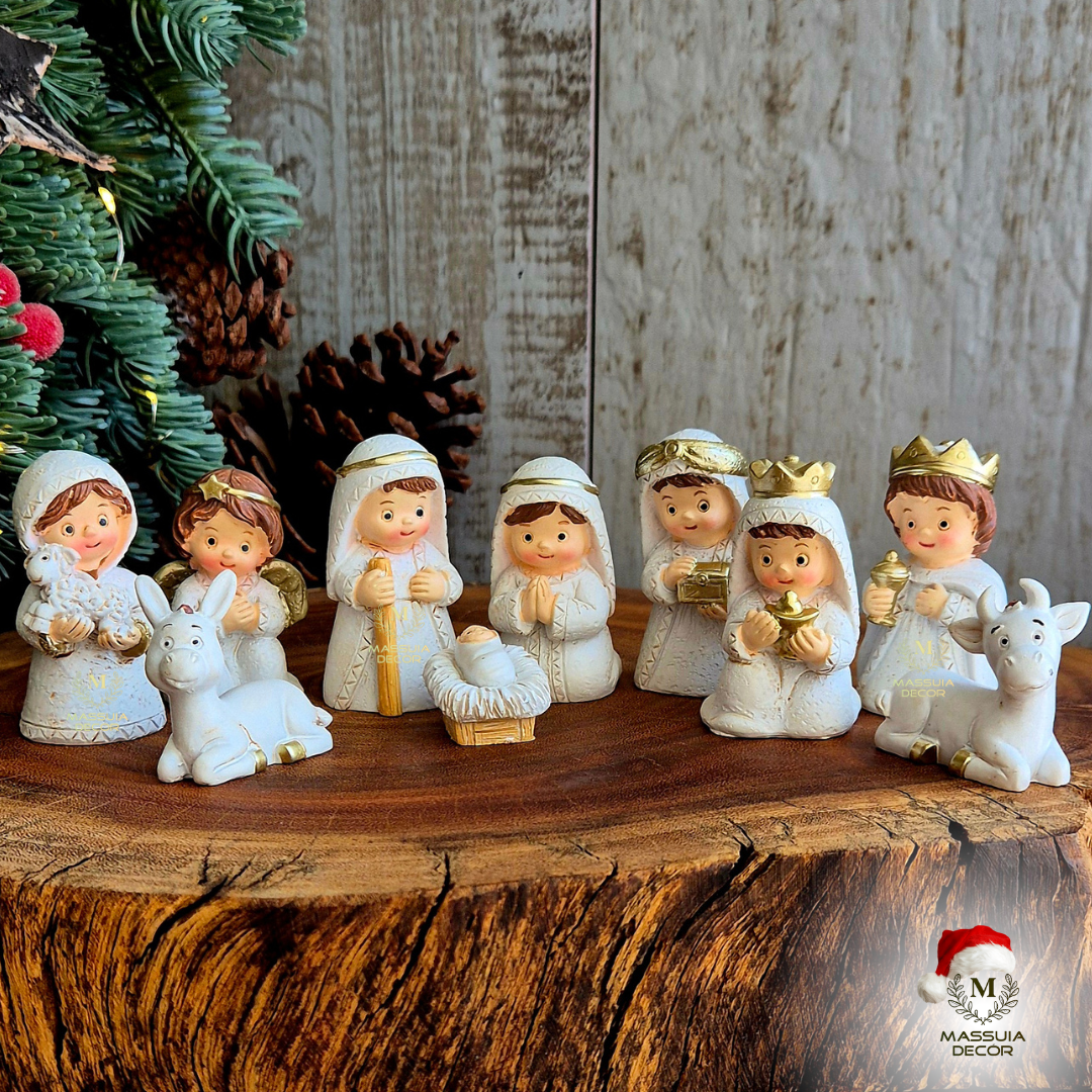 Encante-se com este presépio, representando o nascimento de Jesus com belas figuras tradicionais com dez peças. Ideal para decorar sua casa durante as festividades de Natal. Feito com materiais de alta qualidade e detalhes fascinantes.