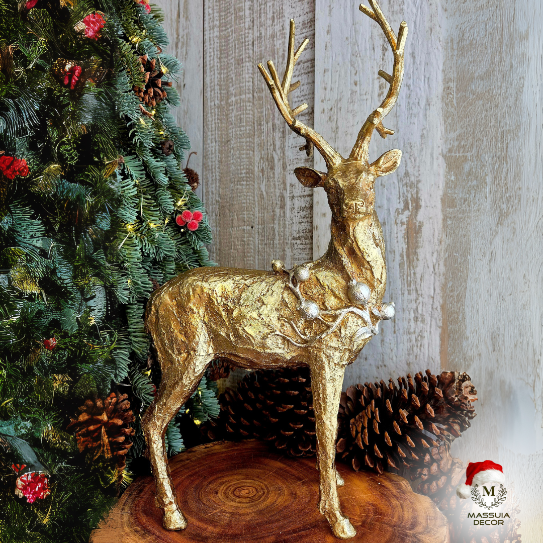 Transforme sua casa em um cenário deslumbrante com a linda Rena Dourada em Pé. Seu acabamento impecável e detalhes encantadores, como o chifre longo e perfeito, tornam-na uma peça única. Ideal para criar uma atmosfera mágica e sofisticada neste Natal!